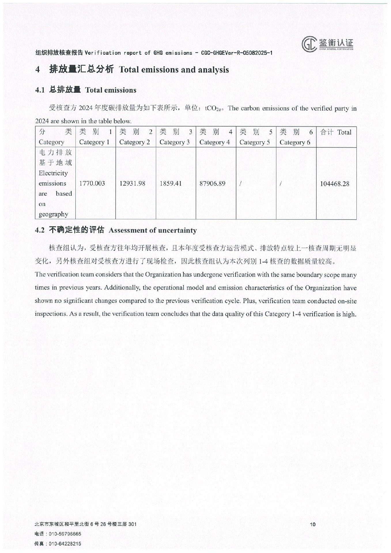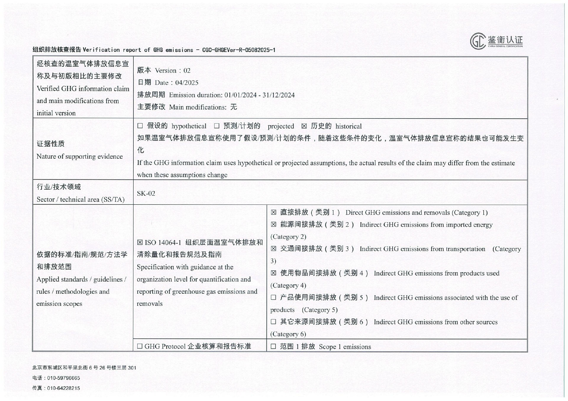 2024年度組織溫室氣體排放和清除核查報(bào)告及聲明